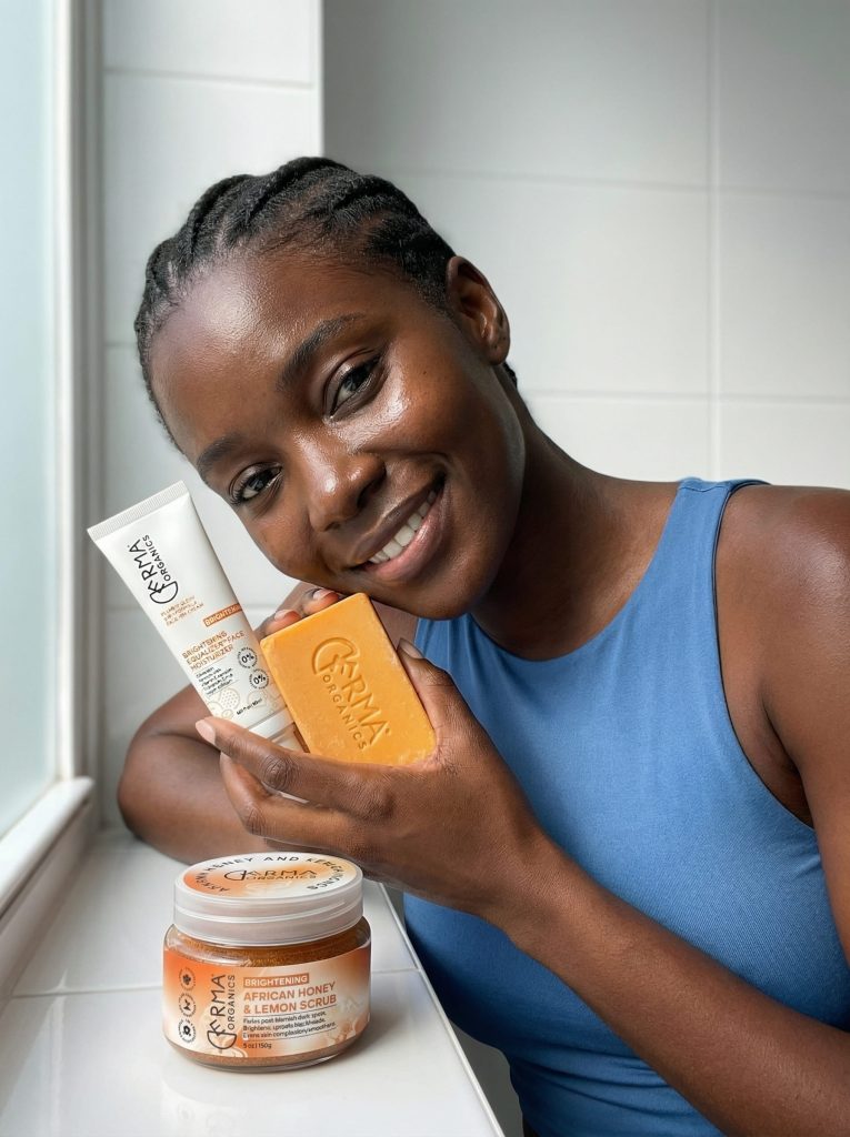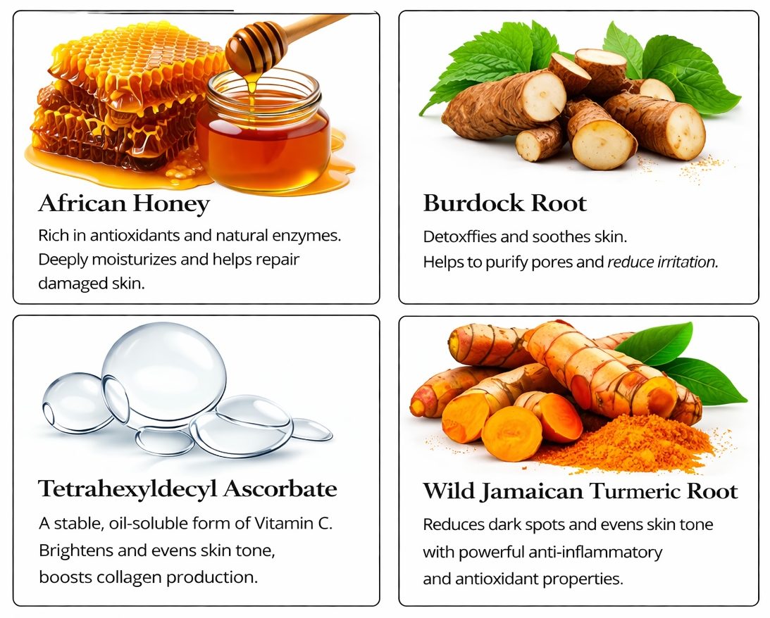 • Infused with brightening actives like African Honey and ground sun-dried Lemon peel