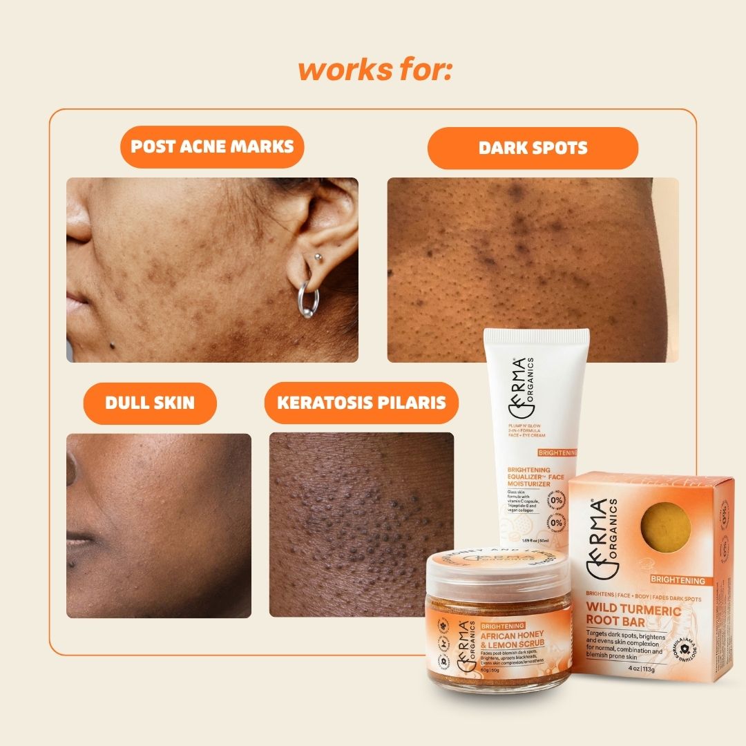 • Formulated with melanin-rich skin in mind, this kit gently targets blemishes, hyperpigmentation, and uneven texture using high-performance natural ingredients that won’t strip or irritate your skin.