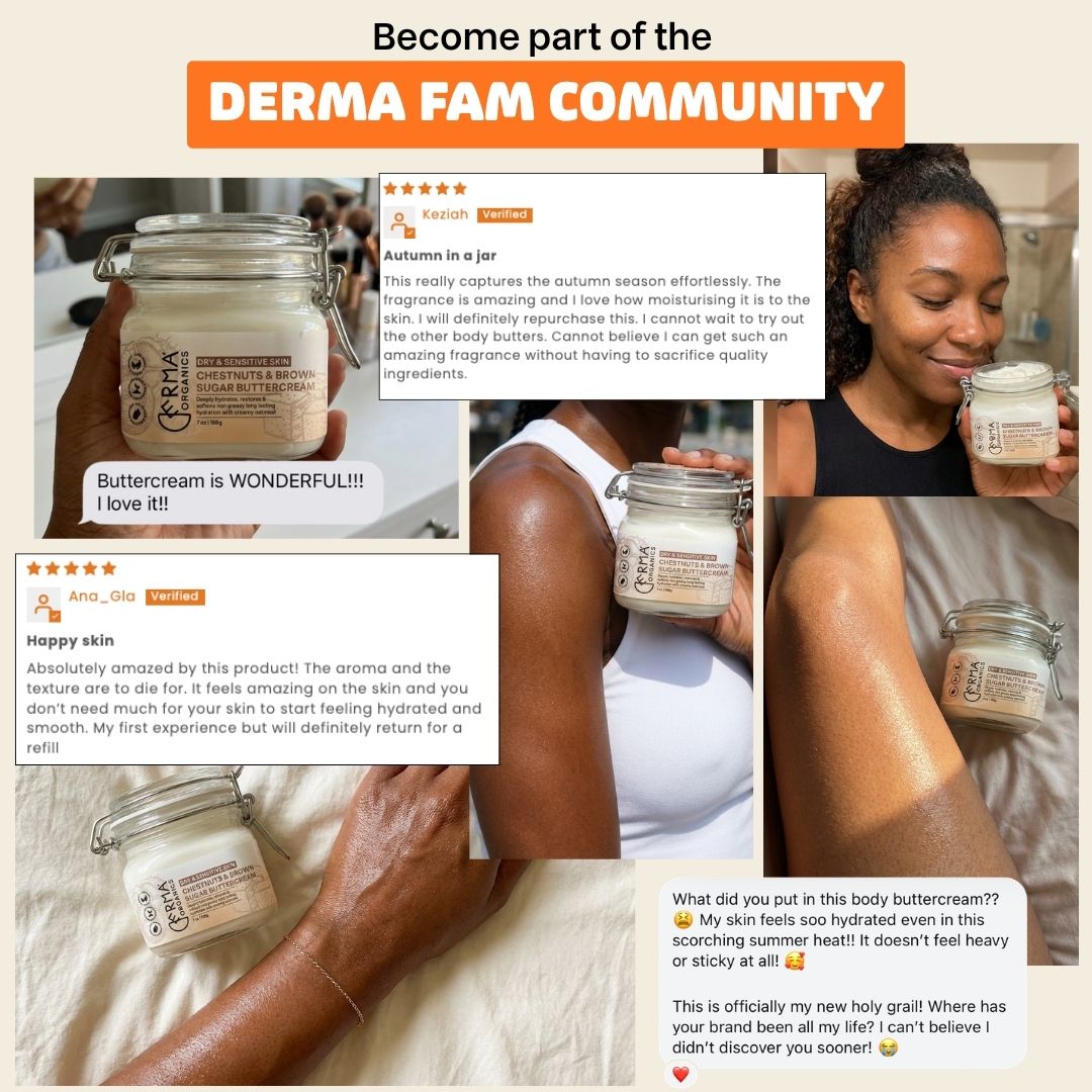 • At Derma Organics we pay attention to our customers! Even after your purchase! and are very intentional about our processes. So we ensured our buttercream formulations were travel friendly! By omitting the anxiety of your butter melting and potentially spilling during transit.
