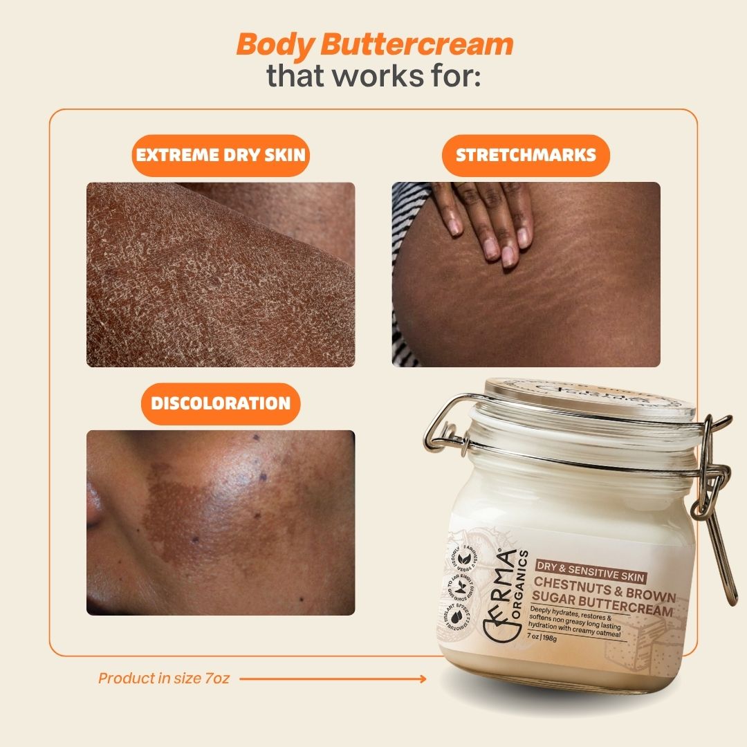 • Our Chestnuts & Brown Sugar Body Buttercream was formulated with awesome customers like yourself in mind. We considered our customers in both hot and cooler regions of the world during the formulation process! So our buttercream is light enough to use in hot climates and dense enough to hug your skin in cooler parts of the world.