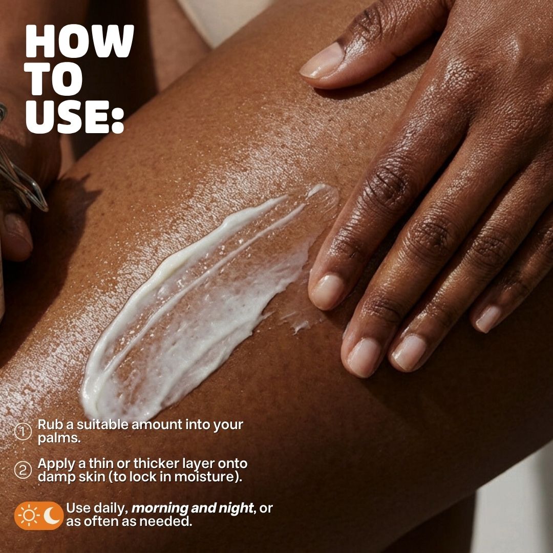 • Rub a suitable amount of Chestnuts & Brown Sugar Body Buttercream into your palm and apply a thin or heavy (personal preference) layer onto your skin.