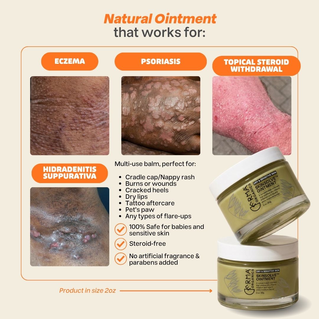 Formulated by a survivor of eczema, TSW, seborrheic dermatitis, and HS.